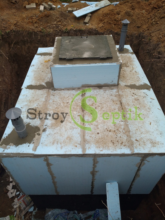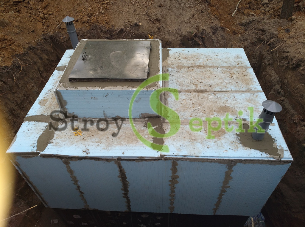 Индивидуальная комплектация септика - люк утепленный на пневмоподъемниках, лестница металическая, утеплитель пенополистирол 40 мм
