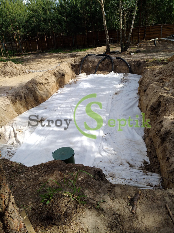 Система автономной канализации: септик бетонный 2-х камерный с дренажным полем "под ключ".